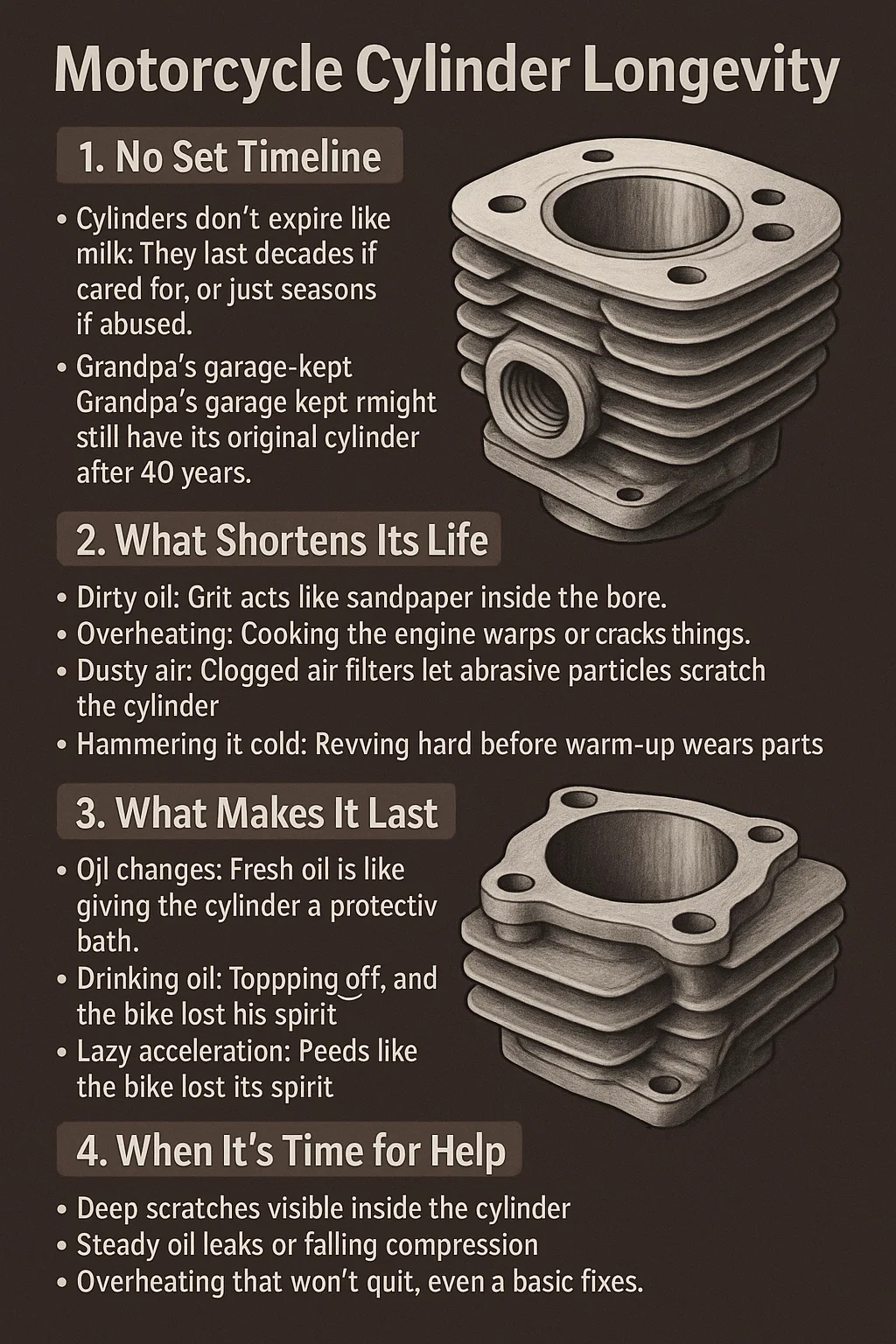 •Sepeda yang disimpan di garasi Kakek mungkin masih memiliki silinder aslinya, sepeda mungkin masih memiliki silinder aslinya setelah 40 tahun. Sepeda motor trail yang terbengkalai mungkin perlu diperbaiki dalam waktu 5.