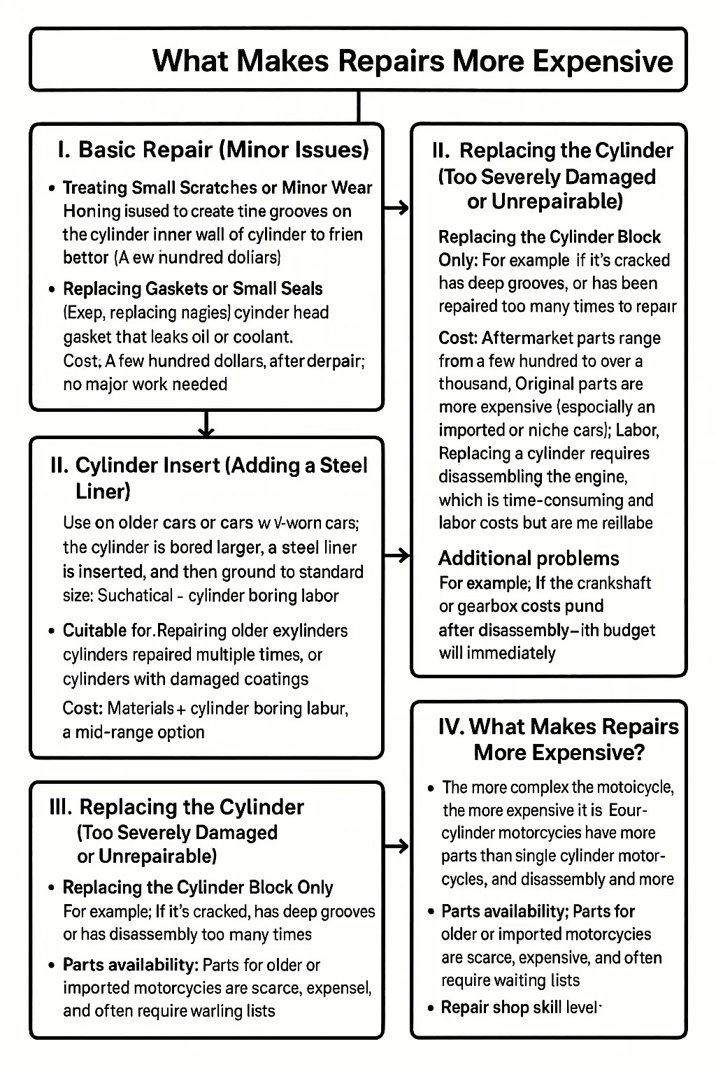 Biaya: Bahannya tidak mahal (puluhan hingga ratusan dolar), namun biaya tenaga kerja akan meningkat tergantung pada sepeda motor dan kerumitan pembongkaran dan perakitan kembali.