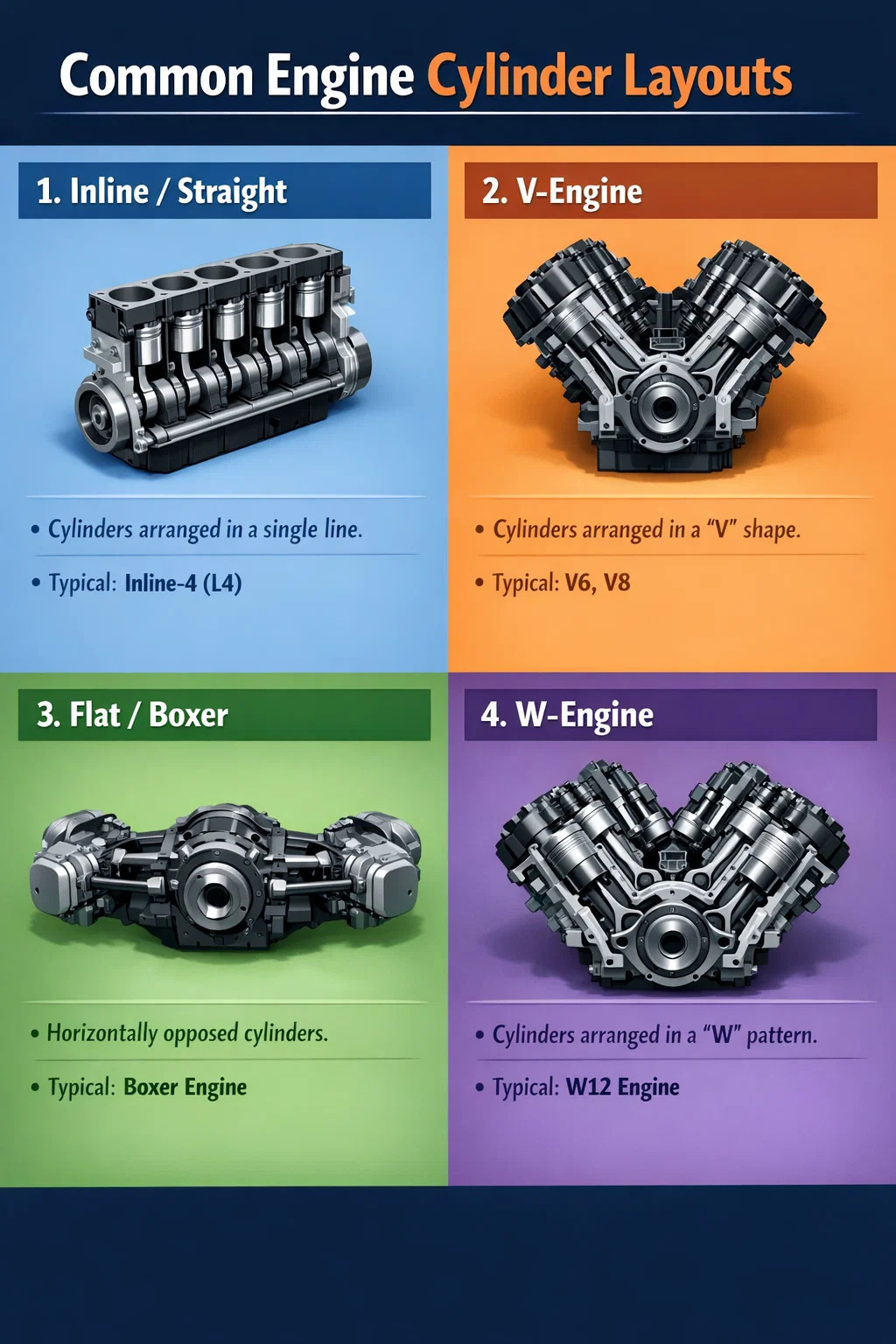 Dalam dunia mesin pembakaran dalam, susunan silinder secara langsung menentukan karakter kendaraan, keluaran tenaga, dan kebutuhan ruang. Tata letak silinder merupakan aspek penting baik pada mobil penumpang maupun kendaraan berperforma tinggi.
