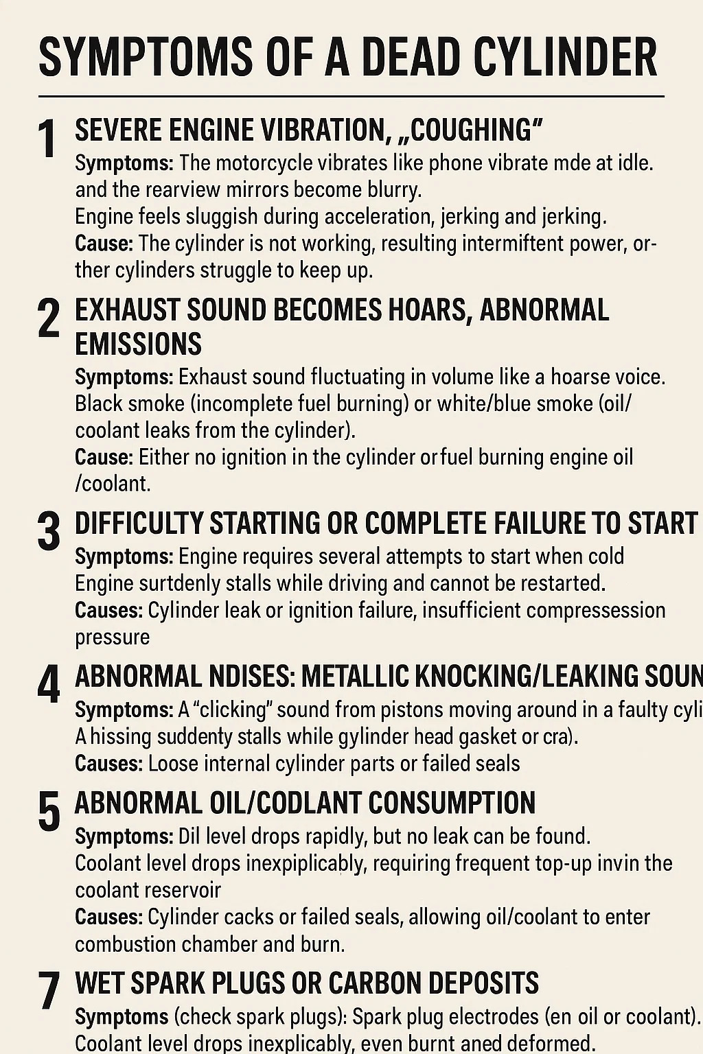 Ketika sebuah silinder sepeda motor gagal total (umumnya dikenal sebagai "silinder mati"), gejala yang jelas berikut akan muncul: