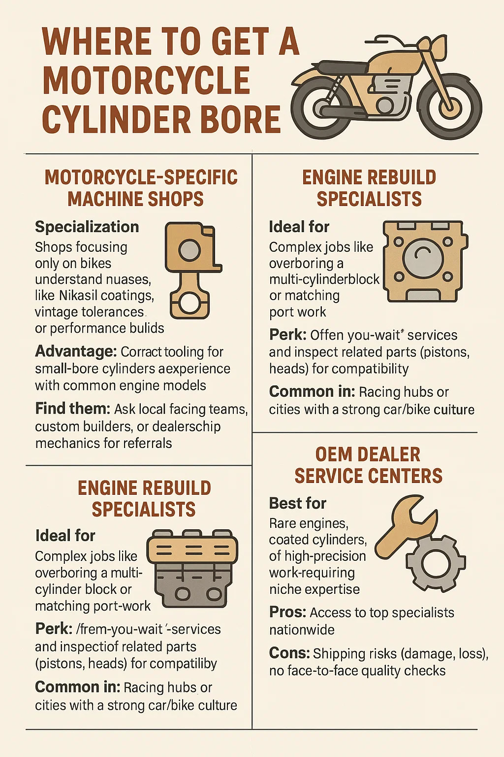 Di sinilah tempat untuk mendapatkan a silinder sepeda motor bosan, dengan pertimbangan utama dalam memilih layanan yang tepat: